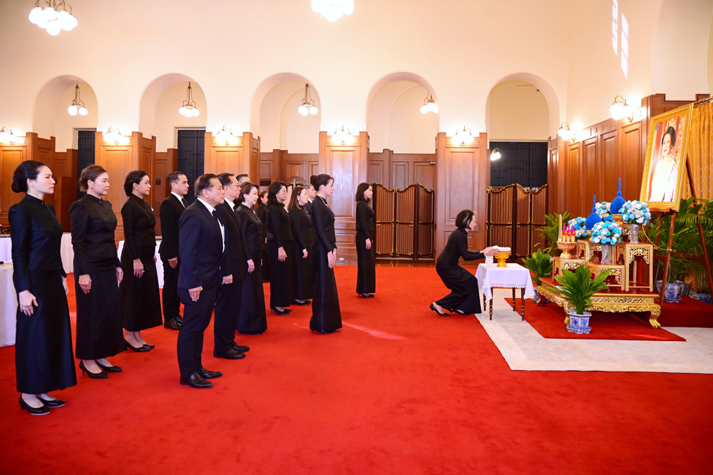 6 พฤศจิกายน 2568 - คณะผู้บริหารและพนักงานบริษัท เดอะมอลล์ กรุ๊ป จำกัด นำโดย นางสาวกฤษณา อัมพุช รองประธานกรรมการ, นางสาวไพลิน อัมพุช ผู้อำนวยการใหญ่บริหารสินค้า และนางสาวพลอยชมพู อัมพุช ผู้อำนวยการใหญ่บริหารสินค้าซูเปอร์มาร์เก็ต บริษัท เดอะมอลล์ กรุ๊ป จำกัด ร่วมลงนามถวายความอาลัย พร้อมนำพวงมาลัยทูลเกล้าทูลกระหม่อมถวายเบื้องหน้าพระฉายาลักษณ์ น้อมสำนึกในพระมหากรุณาธิคุณ สมเด็จพระนางเจ้าสิริกิติ์ พระบรมราชินีนาถ พระบรมราชชนนีพันปีหลวง ณ ศาลาสหทัยสมาคม ในพระบรมมหาราชวัง