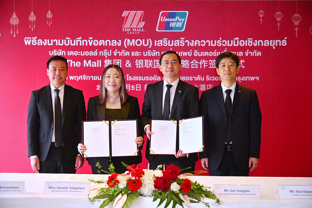 พิธีลงนามความร่วมมือจัดขึ้นอย่างเป็นทางการ โดยมี Mr. Guo Dayong, President, China UnionPay ซึ่งถือเป็นอีกก้าวสำคัญของความร่วมมือที่ต่อยอดจากความสัมพันธ์ทางธุรกิจอันแน่นแฟ้นระหว่างทั้ง 2 องค์กร โดยความร่วมมือครั้งนี้จะเสริมสร้างพันธมิตรทางการค้าระยะยาว ภายใต้แนวคิด “Retail x Tourism x Payment Ecosystem” ที่ผสานความแข็งแกร่งของอุตสาหกรรมค้าปลีกไทยเข้ากับเทคโนโลยีการชำระเงินระดับโลกของ UnionPay เพื่อมอบประสบการณ์ช้อปปิ้งแบบไร้รอยต่อให้แก่ลูกค้าทั้งชาวไทยและต่างชาติ โดยเฉพาะอย่างยิ่ง ‘ตลาดนักท่องเที่ยวจีน‘ ซึ่งเป็นตลาดหลักของการท่องเที่ยวไทย ความร่วมมือครั้งนี้จะช่วยสร้างความมั่นใจในการใช้จ่าย กระตุ้นการเดินทาง และเพิ่มพลังให้ภาคค้าปลีกไทยเติบโตควบคู่กับการฟื้นตัวของเศรษฐกิจการท่องเที่ยว ขณะเดียวกันยังเป็นการตอกย้ำบทบาทของกลุ่มบริษัท เดอะมอลล์ กรุ๊ป ในฐานะองค์กรเอกชนไทย ที่มีบทบาทสำคัญในการขับเคลื่อนอุตสาหกรรมค้าปลีกและการท่องเที่ยวของประเทศ
